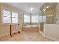 Fantastic 4 bedroom home featuring over 3100 square feet nestled on a 69 by 117 foot pie shaped lot and located in the exclusive area of Joshua Creek. Spacious living/dining room area with hardwood floors and coffered ceiling. Large family size kitchen with granite countertops, stainless steel appliances with Jennair gas stove, breakfast bar, pot lighting, ceramic floors, and stone backsplash. Gorgeous family room with hardwood floors, gas fireplace with custom cabinetry and mantle. Fantastic layout with 9 foot ceilings on the main level, freshly painted throughout (2024), convenient main floor office with coffered ceilings, 2 piece powder room with pedestal sink, main floor laundry with front load washer/dryer, California shutters and crown moulding on the main and upper levels. Primary bedroom retreat his/her walk-in closets, 5 piece en-suite with oval tub and walk-in shower with rain shower head. Upper level sitting area, updated main 4 piece bathroom with porcelain floors and soaker tub. Great curb appeal with double door entry with beveled glass, stone/brick exterior, stone driveway, walkway and front patio area. Backyard oasis with walk-out to custom composite decking with glass panels (2024), flagstone walkway leading from side yard, gorgeous landscaped gardens, and garden shed. Premium location close to schools, parks, trails, golf, transit, and highways. Fridge (2024), stove, dishwasher (2024), washer, dryer, central vacuum with attachments (not carpet), 2 garage door openers, garden shed, all light fixtures, and all window coverings.