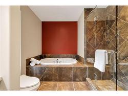 A remarkable lifestyle awaits in Oakville’s highly sought-after West Oakville community, where every convenience is just steps away. This exquisite custom raised bungaloft, redesigned in 2016 by Keeren Designs, backs directly onto the scenic Donovan Bailey Trail & is only a 3-minute walk to the Queen Elizabeth Park Community & Cultural Centre. Enjoy nearby Bronte Harbour, Lake Ontario, waterfront parks, & Bronte Village’s shops & restaurants, all just minutes away, with quick commuter access to Bronte GO Station & the QEW/403. Showcasing undeniable curb appeal, this luxury home features a stucco façade with accent shutters, stone steps leading to a covered entry with columns & iron railings, interlocking stone walkways, professional landscaping with mature trees, a 9-zone irrigation system, & exterior cameras. The private backyard retreat offers upper & lower stone patios, gardens with armour stone accents, evergreens, & direct trail access. Inside, the residence boasts 2+3 bedrooms, 2.5 bathrooms, & a versatile loft perfect as a bedroom, home office, or studio. The 2016 transformation added a gourmet kitchen, wide-plank hardwood, designer tiles, custom built-ins, deep trim, built-in speakers, & expandable Control4 smart home automation. Designed for comfort & entertaining, the open-concept main floor offers 9’ ceilings, family room with gas fireplace, spacious dining room, & chef’s kitchen with custom cabinetry, quartz counters, oversized island with seating for 6, high-end appliances, & a breakfast area with walkout to the backyard. The primary suite showcases 2 walk-in closets & a spa-inspired 4-piece ensuite with soaker tub & oversized glass shower. The finished lower level includes a large recreation room, 3 bright bedrooms, 3-piece bath with heated floor & glass shower, oversized laundry, & abundant storage. Upgrades include furnace, HRV, roof shingles (2016), & recently, some main floor windows updated, & addition of a custom 8’ solid wood front entry door.