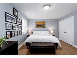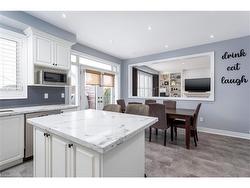 Welcome to Oakville's prestigious Joshua Creek community-where convenience, luxury, & top-rated schools meet. This custom Dawn Victoria built home meticulously maintained & tastefully updated 4-bedroom, 3.5-bathroom family home is located within the Iroquois Ridge High School catchment & just a short walk to the Iroquois Ridge Community Centre. Everyday essentials, shopping, & dining are minutes away at the Uptown Core, while commuters will love easy highway access. The home's elegant stone & stucco façade is complemented by manicured gardens, soffit lighting, & a patterned concrete walkway leading to the covered front entrance. Inside, discover a customized layout with 9-foot main-floor & basement ceilings, a refinished staircase, refinished hardwood & engineered hardwood flooring (2025), pot lights, & California shutters. The spacious dining room is perfect for hosting, while the inviting family room features wall-to-wall custom cabinetry surrounding a cozy gas fireplace. The renovated kitchen (2021) is a chef's dream, with quartz countertops, white cabinetry with crown mouldings, an island with a breakfast bar, a walk-in pantry, & stainless steel appliances. The breakfast area opens to a large deck with a full-width electric awning, an expansive patio ideal for entertaining, & a gas hookup for barbecuing. Upstairs, you'll find 4 generous bedrooms, a convenient laundry room, & 2 full baths, including a luxurious 5-piece primary ensuite with a corner soaker tub & separate shower. Professionally finished basement offers exceptional recreation room, custom bar with granite counters, gym, office/bedroom & a 3-piece bathroom. Additional highlights include a re-shingled roof (2025), a double garage with epoxy flooring & inside entry, & an irrigation system. This stunning property blends timeless craftsmanship, modern upgrades, & an unbeatable Oakville location-perfect for families seeking comfort, sophistication, & convenience in Joshua Creek real estate.