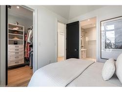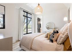 Located in one of Oakville's most desirable pockets this new custom home creates a stylish atmosphere that will impress even the most detailed buyer. Architecture by Hicks Design Studio and built by Gasparro Homes this home features over 3,100 square feet above grade as well as a rare double car garage. The transitional design layered with soft textures and high-end light fixtures make it the ultimate retreat! The foyer provides a clean sightline through the rear of the home which highlights the near floor to ceiling windows. Double metal French doors, with beveled privacy glass, lead you into the home office with wall-to-wall cabinetry. From the dining room, walk through the butlers pantry into the open concept kitchen and family room. The kitchen, by Barzotti Woodworking, is extremely functional and features white oak cabinetry with black/glass accents, an oversized island, and cozy breakfast nook. The second level of this home has a bright and airy feel with gorgeous skylights and semi-vaulted ceilings in every room allowing for extended ceiling heights. The primary suite spans the rear of the home with stylish ensuite and large walk-in closet with custom organizers. Two additional bedrooms share access to a jack-and-jill washroom. The final bedroom upstairs enjoys its own private ensuite and has a walk-in closet. The lower level of this home features 10ft ceilings and radiant in floor heating. The recreation room, with custom wet bar overlooks the glass enclosed home gym. A fifth bedroom along with full washroom is also found on this level. This level is finished off with a cozy home theatre. This home also features two furnaces and two air conditioners for ultimate home comfort. The private rear yard is freshly landscaped with a full irrigation system as well as landscape lighting. The back patio features retractable screens and naturally extends the indoor living space. The ultimate turn-key package.