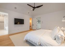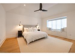 Situated on a premium 75' x 150' lot in the heart of West Oakville, this custom-built residence offers 3,625 square feet of thoughtfully curated living space. Completed in 2020 by Scott Ryan Design Build, the home showcases timeless architectural design, superior craftsmanship, and a floor plan tailored for modern family life. The main floor impresses from the moment you step inside. Herringbone-patterned engineered hardwood floors, soaring ceiling heights, and custom millwork by Misani Custom Design create a warm yet elegant backdrop. A dedicated office at the front of the home provides a quiet workspace, while the formal dining room with adjacent servery is perfect for entertaining. The heart of the home is the expansive kitchen where custom cabinetry, premium appliances, and a large island flow seamlessly into the great room. A thoughtfully designed mudroom with built-ins and side entry adds everyday functionality. Upstairs, the primary suite is a private retreat featuring a spacious, custom-designed walk-in closet and a luxurious ensuite with double vanity, freestanding soaker tub, and oversized shower. The two additional bedrooms include private ensuites and custom built-ins, offering privacy and comfort for family and guests alike. A fully outfitted laundry room finishes off this level. The fully finished lower level offers nearly 1,900 square feet of additional space with radiant in-floor heating and polished concrete floors. A large recreation area, fourth bedroom, full bathroom with steam shower, second laundry and ample storage make this level both versatile and functional. Step outside to a backyard oasis designed for year-round enjoyment. A covered rear porch with glass enclosure acts as a true four-season extension of the home, while the built-in BBQ, hot tub, and landscaped grounds create an idyllic setting for outdoor entertaining. An exceptional offering in West Oakville, this home delivers style, substance, and space in equal measure.