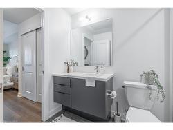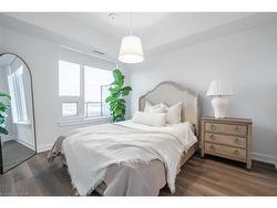 Unlock turn-key living at the Upper West Side Condos by Branthaven! This beautifully maintained 695 sq ft one-bedroom + den, one-bathroom suite on the fourth floor is truly one of a kind. Step inside to wide-plank flooring throughout, bright white walls in flawless condition, and a stunning kitchen featuring quartz countertops, subway tile backsplash, under-cabinet lighting, undermount sink, floor-to-ceiling cabinetry, seating for three at the peninsula, a dedicated coffee bar, and a fridge water line hook-up. The spacious living room boasts soaring ceilings, a builder-upgraded TV-ready package, and access to a private 50 sq ft south-facing balcony with serene views. The bedroom easily accommodates a queen bed with room to size up and offers an expansive closet with room for a dresser, plus a valued builder upgrade: ensuite access to the four-piece bathroom, complete with a large vanity, ample counter space, and pristine tilework. Additional highlights include in-suite laundry, an entry closet, geo-thermal heating and cooling, one storage locker, one underground parking space, and Bell internet included in the condo fees. Enjoy the convenience of keyless entry and the BH Home Technology system for a seamless living experience. Residents have access to top-tier amenities, including a concierge and security, fully equipped gym, pet wash and grooming station, media and party rooms, games rooms, rooftop deck and garden with BBQs, and ample visitor parking. Located in the heart of Joshua Meadows, you’re just a short drive to the Uptown Core for shopping, dining, and services, as well as nearby walking trails, golf, parks, and top-ranked schools. Commuting is effortless with quick access to highways 403, 407, and the QEW, making both work and play incredibly convenient.