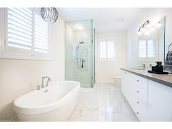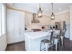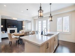 Stunning 5-Bedroom Executive Home in The Oakes over 4500 Sq Ft of finished Luxury Living space. Welcome to this exquisite Treasure Hill Baymont Five (Elevation C), family-friendly living in the heart of The Oakes, one of Oakville's most sought-after communities.Designed with function and sophistication in mind, Exterior pot lights around home, the main floor features soaring 10ft ceilings, a spacious formal living/dining area, a private den, and an open-concept kitchen with extended cabinetry, centre island, and breakfast area all overlooking the sun-filled family room with a gas fireplace and large windows.Upstairs, 9ft ceiling you'll find five generously sized bedrooms, including a luxurious primary suite with a walk-in closet and spa-like 5-piece ensuite. Bonus, garage has a rough in EV line.The second floor also includes a convenient laundry room, two shared bathrooms, and ample closet space throughout. Located near parks, top-rated schools, and all major amenities. This is your chance to own a move-in ready home in a thriving, family-focused neighbourhood. Don't miss out book your showing today