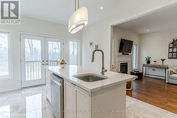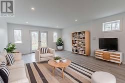 FOREST VIEWS, ELEVATED FINISHES, & A WALKOUT BASEMENT - YOUR PRIVATE HALF-ACRE RETREAT IN SUGARBUSH AWAITS! Tucked away on a quiet street in Sugarbush, this raised bungalow invites you to live a lifestyle wrapped in beauty, comfort, and year-round outdoor recreation. Surrounded by forest and protected green space, the setting offers a peaceful connection to nature, where mature trees line the landscape and every window captures a picture-perfect view. Imagine morning coffee on your balcony as the sun filters through the trees, backyard dinners under the stars, and weekends spent exploring nearby ski slopes, golf courses, Vetta Nordic Spa, hiking trails, and conservation lands, all just minutes from your door. The half-acre lot is beautifully landscaped with endless space for play, entertaining, and relaxation, with the exciting potential to add a backyard pool thanks to the front septic placement. Step inside to a bright, open-concept interior where natural light pours through oversized windows, highlighting the warmth of a gas fireplace in the living room, the elegant dining area, and the chef-worthy kitchen with quartz counters, modern cabinetry, a large breakfast bar island, and a walkout to the elevated balcony. Three spacious bedrooms grace the main level, including a primary retreat with dual closets and a private ensuite complete with a deep soaker tub. A sleek 3-piece bathroom and convenient main floor laundry round out the level. Downstairs, the finished basement offers incredible versatility with a fourth bedroom, a stylish bathroom, a cozy media room with an electric fireplace, and a large rec room that opens directly to the backyard, creating excellent in-law potential. Every inch of this home has been crafted with care, showcasing high-end finishes and a like-new feel that's ready for you to fall in love. Don't miss your chance to call this unforgettable #HomeToStay yours, where coming home each day feels like stepping into your very own private escape! (id:27)