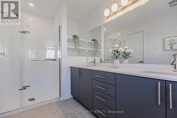 This beautifully maintained executive end unit townhome offers over 2,160 sq ft of thoughtfully designed living space. The main floor features hardwood flooring, a welcoming foyer, and an open-concept living and dining area. The upgraded white kitchen boasts quartz countertops, a walk-in pantry, an oversized island with a breakfast bar, and stainless steel appliances. Upstairs, the spacious primary bedroom includes a luxurious ensuite with quartz counters and a glass-tiled shower. You'll also find a convenient second-floor laundry room, a 4-piece main bathroom, a linen closet, and two generously sized bedrooms with large windows providing ample natural light. The lower level features a spacious family room with a cozy gas fireplace and an abundance of natural light. There is also a rough-in 3-piece bathroom and a mechanical room with ample storage space. Located within walking distance to schools, shopping, restaurants, daycare, and other amenities. (id:27)