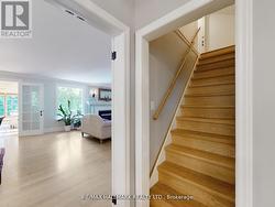 Charming, super bright ranch-style bungalow with 2 attached garages, covering 2,390 square feet, is situated in the desirable quiet cul-de-sac Mill Pond neighborhood, surrounded by mature trees for ultimate privacy. Enjoy Muskoka living within the city. The house is located on a spacious and private lot measuring 77.8 by 178 feet, expanding to 88.07 feet at the back (as per Geo). It perfectly combines luxury and comfort. Featuring four generous bedrooms and four well-appointed bathrooms with granite countertops, this home is ideal for modern living. The inviting family room, complete with a wood stove and access to a lovely patio alongside the spacious living and dining areas with a gas fireplace, provides ample space for relaxation and entertainment. Additional highlights include a fourth bedroom with an ensuite bathroom and skylights in the loft, making it perfect for guests. The primary bedroom is a true retreat, featuring an ensuite bathroom with heated floors, a cozy fireplace, direct access to a double garage, and a walkout to a private deck. Elegant hardwood flooring throughout adds to the warm and inviting atmosphere. Moreover, the property offers a versatile multi-purpose family room that can serve as a home office, recreation room, or library, catering to various needs.**EXTRAS:** Updated windows, Pella window in the family room, replaced shingles, garage door opener with two remotes, central vacuum, stainless steel appliances, LG washer and dryer, heated floor in the family room and primary bathroom, and six skylights. (id:27)