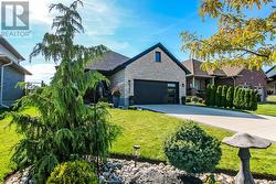 This beautiful bungalow located in Shaw Valley is sure to impress. From the moment you see the home you will find that pride of ownership is evident throughout and no expenses has been spared. Starting from the curb you will find a stone exterior with custom wrought iron railings, professional landscaping, concrete laneway with parking for 4 and a heated double attached garage with basement access. Entering the home you will find a welcoming foyer with views through the home. Off to the side is the guest bedroom, a custom full bathroom, and laundry room with access to the garage. The main living space at the back of the home is ideal for day to day living with a thoughtful layout consisting of a perfect sized dining room, large kitchen with cherry cabinets, walnut hardwood floors, live edge quartz countertops, oversized island, corner pantry and SS appliances. The breakfast nook has a serving hutch with a bar fridge and access to the patio. The bright living room has views of the backyard and green space with a gas fireplace as the focal point. Finishing off the main floor is the primary bedroom that offers ample space, tray ceilings, an ensuite with shower and a walk-in closet. The lower level continues to impress with potential for an in-law suite, a family room big enough for two entertaining areas, large egress windows in every room, a third bedroom with the potential to add a fourth bedroom, full bathroom with walk-in shower and a custom vanity. The backyard is an entertainers dream with a stamped patio spanning the back of the home with a canopy, outdoor cooking area, mature landscaping, a walkway to the shed and the side of the home and west facing views of the green space and park. (id:27)