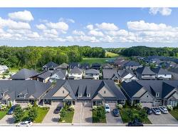 Welcome to your dream home in the coveted Merritt Meadows community! This Rinaldi-built luxury bungalow townhome perfectly blends elegance and comfort. The thoughtfully designed layout includes two main-floor bedrooms, two full bathrooms, and convenient laundry. The open-concept kitchen features premium cabinetry, a stylish backsplash, quartz countertops, and an expansive island for entertaining. The master suite is a retreat with an ensuite bathroom, walk-in shower, double sinks, and a spacious walk-in closet. Neutral hardwood flooring extends from the master bedroom to the great room, dining room, hallway, and front office/bedroom. The fully finished custom lower level (2021) adds two more bedrooms, a full bathroom, and a large recreation room, ideal for gatherings or a home theater. Step outside to your private courtyard with a covered rear deck, low-maintenance backyard, aggregate patio, and manicured gardens. Additional highlights include a front porch, single-car garage with inside entry, custom rod iron railings, and a double gas line for your BBQ or outdoor fireplace. Experience unparalleled quality and craftsmanship at Merritt Meadows!