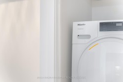 Inclusions: Brand New Engineered Hardwood Floors. Miele Washer & Dryer (2023+5 Year warranty). Brand New Bosch OTR Microwave. Brand New Toilet. Blackout Blinds in the Bedroom. One Locker Included. Stainless Steel Kitchen Appliances: Fridge, Cooktop, Oven, Microwave/Hood fan, Dishwasher. Stacked Washer/Dryer, Window Coverings, and Elfs.