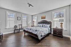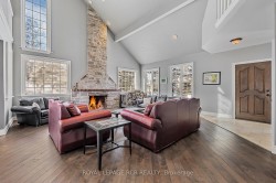 Rare custom-built stone Bungaloft 1.27 private and mature treed acres with a high-elevation and excellent views nestled into a desirable South Goodwood Estate location. Enter into the expansive twenty-foot ceilings in the beautiful great room with a massive hand crafted floor to ceiling stone and brick fireplace. Perfect layout with main floor primary bedroom suite complete with walk-in closet and 5pc ensuite, double sinks and a luxurious soaker tub. The kitchen features stunning light with large windows, travertine floors, stone countertops and amazing storage. The second floor offers three additional bedrooms and another full bathroom. The walk-out basement is perfect for multi family living and offers large completely above grade windows, a separate entrance, a theatre room and a rec room that is big enough for a full-size pool table, a seating area and gas fireplace roughed in. The exterior space is an entertainer's dream with an expansive stone patio, outdoor stone kitchen, fireplace and hot tub, mature tress and relaxing country views.