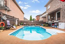 Ideal detached home located in highly desirable family friendly community. Impressive curb appeal with oversized front door, patterned concrete driveway & brand new garage door. Open concept main floor with wall to wall windows and hardwood flooring throughout. Modern chefs kitchen boasting custom cabinetry, granite counters and backsplash, double wall oven, pot filler, drawer microwave, under-cabinet lighting, and a large island with hard block countertops. Brand new blinds & upgraded LED lighting + renovated powder room on main floor. 4 spacious bedrooms with ample closet space. Primary bedroom with spa like ensuite with jacuzzi tub & granite finishes. Finished basement with additional storage space. Backyard ready to host friends and family this summer with salt water pool, with rubber surfacing, stucco cabana, interlock pathways + underground sprinklers. A/C, furnace, humidifier, and roof were all replaced in 2022. Prime location minutes to top schools, parks, trails, and shopping. A must see! (id:7525)