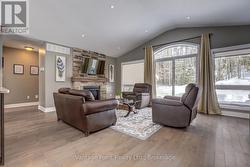 Welcome to your private oasis! Nestled on a private 6-acre property, this stunning estate offers the perfect blend of luxury, comfort, and tranquility. As you drive up the newly asphalted winding driveway, you'll immediately notice the exquisite landscape and privacy being surrounded by beautiful tall trees creating a picturesque and inviting entrance. The centerpiece of the beautiful backyard is the in-ground heated swimming pool, complete with a spacious concrete patio complimented by impressive armor stone retaining walls, making it perfect for lounging and entertaining. Adjacent to the pool, the 500 square foot pool lounge has the comfort of heating, cooling, a stylish bar, and a cozy gas fireplace, providing the ideal setting for year-round enjoyment. This exceptional property also includes a 2-car garage equipped with an electric car charging station. Inside, the home offers a seamless blend of elegance and practicality with an open concept kitchen and living area. The master bedroom is a true retreat, featuring access to the back deck by the hot tub, a walk-in closet and a luxurious ensuite bathroom, and for added convenience there's a laundry chute in the closet. The secluded deck and a soothing hot tub provide additional outdoor relaxation options, all surrounded by tall trees that enhance the sense of privacy and seclusion. The finished basement adds valuable living space, perfect for a family room, home office, or recreational area. Experience the ultimate in luxury living with this remarkable property. Close to multiple lakes such as Farden lake, Bells Lake, Townsend Lake, Irish lake, Robson Lake, and Eugenia lake. The Glenelg Klondike is also around the corner which features 400 acres of trails and groomed cross country skiing trails. (id:27)