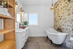 Step back in time and experience the magic of this 1800s fieldstone century home where history and modern craftsmanship blend into something truly extraordinary. Lovingly restored from the studs up, every detail of this home has been carefully reimagined to honour its past while embracing the comforts of today. The heart of the home is its sun-drenched main floor, where 12-inch pine flooring, oversized baseboards, and deep windowsills frame the charm of each room. The kitchen is as functional as it is enchanting, featuring slate countertops, repurposed sunroom windows transformed into cabinetry, a six-burner gas oven, and an industrial dishwasher designed for effortless entertaining. A clawfoot tub, copper sink, and exposed stone wall bring timeless character to the main-floor bathroom, while the formal dining room, elegant staircase, living room and a main-level bedroom complete this inviting space. Upstairs, four generous bedrooms unfold, along with a three-piece bath in one of the bedrooms for convenience, another three-piece bath plus laundry extend into the addition of the home, and a bonus skylit retreat perfect as an office, studio, or reading nook. The attic and dual basements offer endless potential to add finish space to the home, with one basement boasting a walkout to the yard. Outside, the story continues across just over an acre of land. A wraparound porch offers sweeping views of the surrounding cornfields, where the colour's of every season paint the perfect backdrop. A charming greenhouse waits at the back, ready for new life to flourish. A rare blend of history, heart, and possibility this one-of-a-kind century home is ready for its next chapter. (id:27)