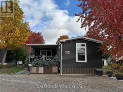 Located in 9 month section of award winning Happy Hills Resort. Gorgeous Custom Built 2021 Commodore Park Model with Additional Sunroom (16 x 42 and 12 x 20). 8ft ceilings throughout allow for extra large double hung windows and transoms. Zebra blinds on all. Eye catching composite deck and skirting with hard top coverage. Sunroom also has composite flooring with loads of added storage, 3 ft windows and pendant lighting. Open concept kitchen has new fully upgraded stainless steel appliances including a higher end gas stove with air fryer and grill, fridge with ice cube maker, a dishwasher, microwave and farm house sink. Solid oak cupboards, and pull out drawer storage including unique pull out storage in "dead space corner". Cupboards are pulled over the fridge and gabled. 3 Stage Home Filter System and higher particle filter for kitchen sink and ice maker. Electric Fireplace in the living room. Both bathrooms have granite vanities and marble flooring. Built in dressers and extra storage in the master bedroom. The laundry is located in the closet in the second bedroom. Both bedrooms fit king size beds. Cement pad and insulated spray foam under both modular and sunroom. 7 x7 shed with hydro. BBQ included on front deck and there is another composite deck off the back door. Lovely castor planters with Blue Spruce in front. Newer lawn mower stays. A truly beautiful location with a large heated family swimming pool, children's splash pad, heated adult's only swimming pool, a 9 hole golf course and driving range, Bocce Ball, Lighted Tennis court, Pickleball, Volleyball, Basketball, Shuffleboard, Horseshoe pits, Daily children's crafts/activities, hayrides, bingos, movies, special tournaments, mini animal farm, hiking trails, several playgrounds, lighted skateboard and bicycle activity center and more. Get in on this lovely lifestyle early! Contact listing agent for fees, deposit and occupancy requirements. 15 minutes to the 401and 10 minutes to amenities. (id:27)