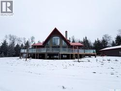 House is custom storey and a half walkout home is situated on 5.07 acres just minutes south of Meadow Lake. Built in 2008 with efficiency in mind, this home is well insulated with extra thick walls, and provides the reliability of geothermal energy to heat and cool to your comfort level. Rich hardwood floors throughout much of the home, hickory cabinetry and granite in the massive kitchen. The living room with a cozy fireplace is the main focal point with a massive wall of windows with views of forest and sky. Open concept main level provides the space to entertain family and friends on all occasions. The main level primary bedroom is spacious with a walk in closet and 5 pc ensuite as well as patio doors leading to the wraparound deck. There is a designated main floor office space, laundry room as well as access to the attached garage as well. The 2nd level offers two large bedrooms, a custom 3 pc bathroom and a nook area overlooking the living room. Lower level provides an additional 2 bedrooms, a 4 pc bathroom with great storage, family room, gym area, utility room and great storage rooms. The yard site is surrounded with mature trees and the Provincial forest right in your backyard! For more information don’t hesitate to call. (id:27)