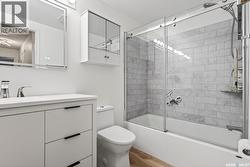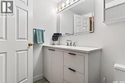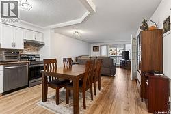 Grade level 2 bedroom condo that has been very well maintained facing North. New counter tops, new back splash, new stainless steel appliances in kitchen. Beautifully update, you notice how spacious the condo is. The kitchen is a great size and has plenty of room for a dining table and open access to the living area. Such a great space for entertaining! The Patio doors in living room lead you to a spacious patio with additional storage area. The French doors off of the living room area lead you into one of the two bedrooms. This is a good size room and has plenty of closet space. The next room is the primary bedroom with a walk in closet and an updated 2 piece en suite for added convenience! The main bathroom is beautifully updated and the storage/laundry area is also a very nice size. This condo has seen many upgrades in the past year including but not limited to, laminate flooring throughout, both bathrooms have been updated, all light fixtures and newer paint throughout . The kitchen has also been updated with backsplash, counter top and under cupboard lighting. This is a great condos in a beautiful area that is close to all East end amenities, the university of Regina, and the ring road. Don't miss out on this one, move in ready and meticulously maintained. (id:27)