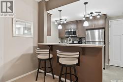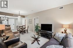 Welcome to Bellagio Terrace, one of Regina’s upscale condo communities, perfectly located in the heart of Hillsdale—steps from Wascana Park, University of Regina, Wascana Rehab, Conexus Arts Centre and countless south-end amenities. Beautifully maintained 2nd floor unit offering 885 sq ft of comfortable MOVE IN READY living space with 2 bedrooms + 2 bathrooms. This home is ideal for 1st time buyers, busy professionals or anyone looking to simplify their lifestyle without compromising on quality, style & convenience. Step inside to an inviting open-concept layout with warm neutral tones and large windows creating a bright atmosphere. Modern kitchen features rich maple cabinetry, tiled backsplash, stainless steel appliances and a sit-up island—perfect for entertaining or casual dining. The dining and living area opens to a private balcony, where you can enjoy your morning coffee, unwind after work or grill a steak on your BBQ. The large primary suite features a walk-in closet and 3-piece ensuite, while the second bedroom and full 4-piece bathroom provide flexibility for guests or a home office. Additional highlights include new carpet, top down bottom up custom blinds, central A/C, in-suite laundry & storage room plus 1 underground heated parking stall which is a luxury during SASK winters. This parking stall is a preferred spot and fits a full sized pick up and is easy to navigate. Condo fees include: heat, water, common area maintenance, snow removal, lawn care and building insurance which make ownership simple and stress-free. Residents enjoy access to a well-equipped fitness room, owner's lounge (currently under reno to refresh the look) and secure elevator access—all in a quiet, pet-friendly building managed by W Management. Whether you’re a first-time buyer ready to build equity, a professional seeking convenience or a down-sizer looking for lock-and-leave comfort, the Bellagio Terrace condo delivers the perfect blend of style, security and location. (id:27)
