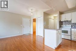 Discover affordable living in a prime Gardiner Heights location with this move-in ready 2-bedroom second floor condo, featuring a stylish blend of hardwood flooring and ceramic tile throughout. The open-concept layout includes a dining area and a functional kitchen with a movable island, perfect for entertaining. Both bedrooms are spacious with large closets, and the unit offers a 4-piece bath, convenient in-suite laundry, and a covered balcony for year-round enjoyment. Two parking stalls are included, and the property is ideally situated near east-end amenities, the University of Regina, and even has a Dairy Queen just steps away for your sweet tooth cravings. Immediate possession available — contact your realtor today to book a showing! (id:27)