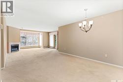 Experience the height of elegant, easy living in this impressive executive condo in the highly sought-after College Park community. Offering 1,338 square feet of thoughtfully designed space, this third-floor unit is filled with natural light and features an open-concept layout ideal for relaxing or entertaining. Step into a grand tiled foyer that leads to the spacious main living area. The inviting living room is anchored by a cozy gas fireplace and a sunlit alcove surrounded by windows—perfect for reading, working, or unwinding. The dining area easily accommodates a large table, while the well-appointed kitchen offers ample cabinetry, white appliances including a built-in oven and cooktop, and generous counter space. A covered east-facing balcony provides a peaceful retreat for morning coffee, complete with a gas BBQ hookup for outdoor dining. The spacious primary suite includes a large walk-in closet and a sleek three-piece ensuite with an oversized shower. A second bedroom offers flexible space for guests or a home office, with a four-piece main bath nearby. Additional conveniences include in-suite laundry with shelving, custom blinds, central air, and elevator access. This condo also includes a 120-square-foot secure storage room and a heated underground parking stall (#31). Residents enjoy an amenities room with games and fitness equipment, a parkade car wash, off-street visitor parking, and a same-floor garbage chute. Steps from Wascana Park, shopping, dining, and essential services, it’s also within walking distance to downtown, Darke Hall, and the refurbished Globe Theatre. Enjoy refined urban living at its best—condo fees cover heat, water, sewer, garbage/recycling, exterior maintenance, lawn care, snow removal, building insurance, and reserve fund contributions. Contact your realtor for more information or a private tour. (id:27)