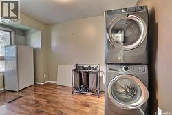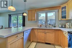 Location, location! Spacious well maintained bungalow on quiet Lakeview Street. Great street appeal with maintenance free lawn, rock border and front driveway. Open floor plan with gleaming hardwood flooring in spacious living room. Beautiful kitchen with an abundance of cabinets and counter space with tile flooring and patio doors off generous sized eating area to private deck. Large primary bedroom with huge closet and 2pc ensuite. 2nd bedroom has an exterior door and hookups for main floor laundry which could easily be moved downstairs. Large main floor family room addition (currently used as master) with fireplace and garden doors to rear yard. Basement has non-regulation basement suite with huge rec room, kitchenette, bedroom and 3/4 bath. Gorgeous, private well landscaped and maintenance free rear yard with stone patio and firepit area. Most appliances included. Call today! (id:27)