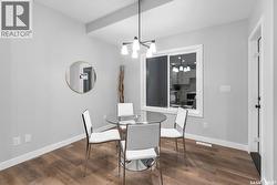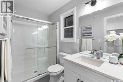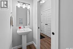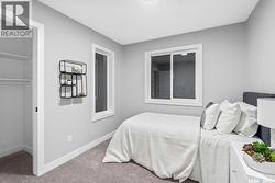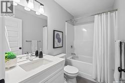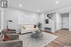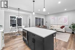 “The Holdenberg” by Ehrenburg Homes – This stylish two-story offers a SUITE OPTION for added flexibility and future income potential. The main floor features an open-concept layout with upgraded Luxury Vinyl Plank flooring, durable, surface that flows seamlessly throughout the main level. The living room includes an electric fireplace, while the modern kitchen offers quartz countertops, a tile backsplash, a large eat-up island, and plenty of cabinetry. Upstairs, enjoy a bright bonus room, three spacious bedrooms, and a primary suite with a walk-in closet and dual-sink ensuite. The basement includes a separate side entry for a potential legal suite. Additional features - Double attached garage with direct entry, Concrete driveway, front landscaping, and front underground sprinklers. High-efficiency furnace, HRV system, and rough-in for central vac Saskatchewan New Home Warranty Quick. PST & GST included in price with rebate to builder. (Photos are of a previous build of the same model; colors and finishes may vary.) Enjoy nearby parks, pathways, and amenities — the perfect home for modern family living. (id:27)