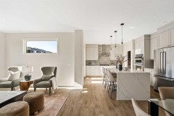 The beautiful Dawson model is a brand new home that features 2 living areas, 3 bedrooms, 2.5 bathrooms and nearly 2,300 square feet of developed living space + an undeveloped basement that awaits your imagination! Located in the heart of Chinook Gate and ideally situated on a large conventional lot with a south-facing backyard, this new home is perfect for a growing family. The double attached garage leads to an expansive mud room that has access to the front of the home and the large walk-through pantry/coffee bar that leads into the kitchen - adding to everyday convenience. The gourmet kitchen is complete with a cooktop, chimney hood fan, built-in wall oven & microwave, and features a central island with additional seating space. The kitchen overlooks the dining area and living room - making this the perfect family home or entertainment space! A central cantilevered gas fireplace in the main level great room is perfect for cozy winter nights. Double patio doors and windows on either side of the fireplace allow for the south-facing backyard sunshine to flow throughout the main living area all day long. The main level is complete with a large foyer, 2 pc powder room and two sets of double closets for ample storage. On the upper level, the bonus room is at the front of the home, overlooking the front street and providing the perfect tv space. The large primary suite is at the back of the home, overlooking the backyard, and is complete with walk-in closet and a 5 pc ensuite including a walk-in tiled shower, soaker tub, double sinks and a private water closet. Two more generous-sized bedrooms, each complete with their own walk-in closets, a full bathroom and laundry room complete the upper level. The undeveloped basement is a clean slate with bathroom rough-ins in place, making future development that much easier! Situated on a conventional lot (not a zero lot-line) that is over 3,700 ft2 in size, with a south-facing backyard, this beautiful new home is perfect for a growing family! This brand new home includes builder warranty + Alberta New Home Warranty - allowing you to purchase with peace of mind in the new community of Chinook Gate.