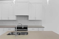 Discover this rare opportunity within Acadia Villas, an exclusive, private gated community nestled in the heart of the award-winning Cooper's Crossing neighborhood. Designed specifically for the discerning downsizer, this community features just 40 meticulously crafted, luxury bungalows, promising both security and serenity. Step into this exceptional bungalow, spanning 1,401 square feet of thoughtfully designed open concept living. The bright and airy ambiance in living area is defined by soaring vaulted ceilings that flood the space with natural light, enhancing the sense of spaciousness and grandeur. The main floor has an ideal layout which hosts 1 bedroom plus den and two full bathrooms, complemented by a practical back hall and a dedicated laundry room for ultimate convenience. The primary bedroom is a true sanctuary, featuring its own vaulted ceiling and generous proportions. The opulent five-piece ensuite is a spa-inspired finishes complete with a walk-in shower, a decadent freestanding soaker tub, and elegant double sinks. Throughout the home, you will find premium finishes including sleek quartz countertops with undermount sinks, durable luxury vinyl plank, and sophisticated tile flooring in all bathrooms. Every detail reflects an unwavering commitment to luxury and low-maintenance living. For those envisioning even more living area, the unfinished basement presents limitless potential. This expansive space offers the opportunity to add additional bedrooms, an expanded entertainment area, or a personalized recreational space—ensuring the home can grow with your changing needs. Acadia Villas provides luxury living without compromise, offering the independence of a bungalow with the security and maintenance-free ease of a gated community.