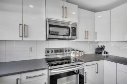 Your Airdrie haven awaits at 404-1530 Bayside Ave SW, a delightful townhouse nestled within the highly desirable Bayside community. Featuring 3 BEDS|2.5 BATHS| DOUBLE ATTACHED GARAGE| AIR CONDITIONER| FENCED FRONT YARD| EXTENDED BALCONY| GLASS RAILINGS| HIGH CEILINGS| OPEN TO ABOVE|, this home offers a wonderful living experience.Step inside to discover a perfectly designed main level, where the living room boasts an impressive open-to-above concept and soaring windows, bathing the space in warm natural light. For those moments of quiet relaxation, an electric fireplace adds a touch of cozy ambiance while you read or watch television.Ascend to the split-level upper floor, thoughtfully designed for all your daily dining needs. The open kitchen, complete with intelligently placed cabinetry offering ample pantry storage, is equipped with sleek stainless steel appliances to inspire your cooking needs. The adjacent dining space provides generous room for hosting large family meals and gatherings.Extend your living space outdoors onto the substantial balcony, enhanced with modern railings and offering a pleasant side view of the lake – a perfect spot to enjoy your afternoon tea with a smile. A convenient powder room completes this level.The upper floor also features a stacked laundry area with a contemporary washer and dryer unit for added convenience. Your primary bedroom serves as a true retreat at the end of the day, boasting an ensuite washroom with double vanity sinks. Two additional well-proportioned bedrooms on this floor can easily accommodate queen-size beds, and a full bathroom caters to the needs of a growing family.Benefit from the convenience of a double attached garage, along with an additional parking pad, providing space for up to four vehicles. The unfinished basement offers exciting potential for customization – envision a home office, a cozy den, or any other space to suit your unique lifestyle.Don't miss the opportunity to truly experience the charm of this wonderful townhouse. Book your personal showing today and take the first step towards making 404-1530 Bayside Ave SW your new address.Check 3D tour.