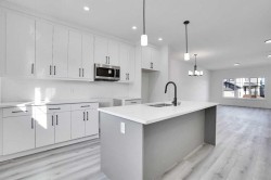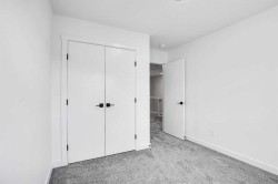 Welcome to 59 Baysprings Terrace, where modern comfort meets timeless design. These brand-new townhomes, built by Luxury Custom Builders, offer a range of thoughtfully designed layouts tailored for contemporary living. Step into a bright and open-concept main floor featuring luxury vinyl plank flooring that flows beautifully throughout the space. At the heart of the home is a gourmet kitchen with a large quartz island, sleek stainless steel appliances, and ample cabinetry—ideal for both entertaining and everyday family meals. A convenient half bath completes the main level. Upstairs, you’ll find three spacious bedrooms, each with walk-in closets and custom built-in shelving. The primary suite is a true retreat—large enough for a king-size bed and complete with a luxurious 5-piece ensuite, including dual sinks, a deep soaker tub, and a separate walk-in shower. A dedicated laundry area on this floor adds everyday convenience. The unfinished basement comes with roughed-in plumbing and awaits your personal vision—ask about available customization options! Enjoy a west-facing, fully fenced backyard with professional landscaping and access to a double detached garage. Located in a well-maintained, self-managed complex with low condo fees, this community offers a warm and welcoming atmosphere. Take advantage of the nearby waterfront trails, paddle-boarding, and winter skating/hockey on the Canals. Families will love the walkability to parks, playgrounds, Nose Creek School (K–4), and close proximity to shopping, dining, and essential services. Whether you’re seeking a spacious family layout or a more compact design, there’s a unit here to match your needs. Note: The Room Dimensions of each unit may vary as the measurements were taken from the builder blueprints. Book your private tour today