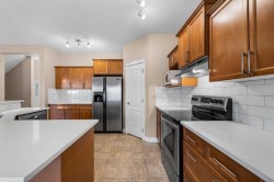 **Beautiful Renovation** Brand New Kitchen Quartz Countertop | New Carpet on Main & Upper Levels | Kitchen Island withBarstool Seating | Walkthrough Pantry | Stainless Steel Appliances | Incredible Living Space | 2,045 SqFt | 4 Bedrooms | 3.5 Bathrooms | HighCeilings | Large Windows | Built-in Storage | Gas Fireplace | Main Level Laundry & Mud Room | Grandiose Bedrooms | Spa Inspired Primary EnsuiteBath | Finished Basement | Great Entertaining Space | Basement Bedroom & 4pc Bath | Gorgeous Backyard | Fully Fenced | Massive Deck | GreatLawn Space | Double Attached Garage | Driveway | Additional Street Parking. Welcome home to your gorgeous move in ready 2-storey family homeboasting 3,022 SqFt of developed living space throughout the main, upper and basement levels. This home has open to below ceilings and largewindows that compliment its natural beauty and living space. The front door open to a foyer with closet storage for a clean and organized space. Theopen floor plan kitchen, dining and living rooms make this the premier home to host family functions! The kitchen is upgraded with a sparkling whitequartz countertops that pops against the natural wood cabinetry. The centre island is a great space for small meals or to socialize while you cook. Thewalkthrough pantry leads to your mudroom/laundry room making grocery drop off easy from the garage. The dining room is paired with a door toyour expansive back deck making indoor/outdoor living a breeze! The living room is centred with a gas fireplace framed with built-in shelving for yourstylish artwork and family photos. The main level laundry and mud room with a walk-in closet off the interior garage door make it accessible foreveryone! The main level is complete with a 2pc bath. Upstairs holds 3 grandiose bedrooms. The primary is a personal oasis with a french door closetand private spa like 5pc ensuite bath. The ensuite has a double vanity with vessel sinks, a walk-in shower, a corner deep soaking jet tub and openfaced linen shelving. Bedrooms 2 & 3 upstairs are both an incredible size and share the 4pc bath with a tub/shower combo. Downstairs, the finishedbasement is an incredible entertainment space. The open floor plan rec room provides you with endless opportunities for a media centre, gym, gamesroom or more! The basement has a good sized bedroom and a 4pc bath. Outside is every home owner's dream; a massive deck and lawn space allfully fenced for privacy! The deck provides you with an outdoor dining area where as the lawn provides space for the kids to play. The front attacheddouble garage provides you with year round parking for 2 vehicles. The driveway provides parking for 2 more and street parking is readily availabletoo. Situated on a quiet street with a beautiful green space you are walking distance to schools, playgrounds, shopping, dining and just a 5 minutedrive to Genesis Place with hockey rinks, pools, indoor soccer and a gym. Hurry and book your showing today!