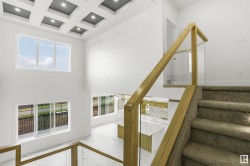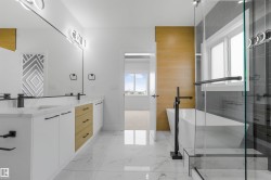 BACKING to WALKING TRAIL! this custom home in the prestigious Lakeview North (Azur), Beaumont! Boasting over 2850 sq.ft. of luxury living, this masterpiece features a triple-car garage and sits on a huge regular lot. Step into the grand foyer with open-to-below ceiling and a spacious living area that makes a bold first impression. The gourmet kitchen is complemented by a full spice kitchen, perfect for culinary enthusiasts. The main floor includes a bedroom with full bath and another open-to-below in living area. Separate side entrance to the basement adds future potential. Upstairs offers 3 bedrooms total out of which 2 are master suites, a third bedroom, a bonus room, an additional full bathroom, and a laundry room for convenience. With premium finishes, a thoughtfully designed layout, and unbeatable location, this home is truly one of a kind. A must-see for those seeking space, luxury, and functionality! Please note: Photos shown are of a similar homes sold before; finishes and layout may vary.