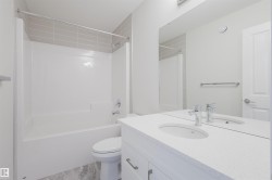Award-winning Crystal Creek Homes presents this stunning two-storey 3 bed, 3 bath detached home in the highly desirable community of Elan in Beaumont. This home offers a perfect blend of modern style and everyday comfort. The open-concept main floor features a full bath and a versatile den. The contemporary kitchen includes a pantry & spacious island that overlooks the bright and airy living room, complete with a cozy fireplace for relaxing evenings. Upstairs, you'll find a generous bonus room, a convenient walk-in laundry area, a 4-piece bathroom, and 3 spacious bedrooms. The primary suite includes a walk-in closet and a luxurious ensuite with double sinks & shower. This home also comes with a $5,000 appliance credit, a separate side entrance to the basement, and a double attached garage! Don't miss your opportunity to make it yours. UNDER CONSTRUCTION! Photos shown are of the same model and are for illustrative purposes only. See 2nd photo for interior colors.