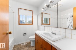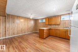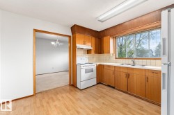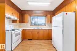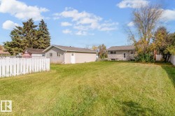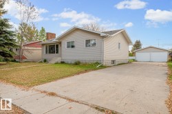 Welcome to your new home! This charming bungalow is nestled in a wonderful neighborhood that's perfect for family living. Comfortable main floor plan featuring a warm & inviting living room with wood feature wall & brick-faced wood fireplace, perfect for cozy evenings. Charming & bright kitchen offers potential for customization & separate formal dining. 5 bedrooms & 2 bathrooms, ensuring plenty of space for everyone. Full basement has been thoughtfully developed & includes a second kitchen, rec room, laundry facilities, an office, ample storage space & cold room. Over the years, the property has seen various upgrades, including some flooring, shingles, hot water tank, high-efficiency furnace & siding. Huge lot is partially fenced & landscaped with mature tree, flower beds, extra parking off back alley & a detached double garage with newer roll-up doors & a concrete front driveway. Great location close to elementary school, swimming pool, parks & shopping. Convenience & Comfort.