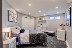 OPEN HOUSE NOV 22 from 12-2pm. STUNNING FAMILY HOME ON A QUIET CRESCENT BACKING ONTO GREENSPACE/WALKING PATHS. Welcome to your dream home with over 2,500 sq. ft. of beautifully maintained living space nestled on a peaceful crescent backing directly onto a greenspace and walking path, with no neighbours behind. The main floor impresses with a lovely kitchen featuring granite countertops, maple cabinets, tile backsplash, a breakfast bar, large pantry, stainless steel appliances, and maple hardwood floors. The spacious living room centres around a cozy natural gas fireplace and offers views of the expansive backyard and peaceful greenbelt beyond. Also on this level are a generous dining room, an enclosed den/office, and a charming 2-piece bathroom. Upstairs, hardwood floors flow throughout the stairs, landing & bedrooms. The huge master suite overlooks the walking path and boasts an upgraded 3-piece ensuite bath plus a large walk-in closet. Two additional spacious bedrooms share a beautifully finished 4-piece bathroom with tile flooring, tub/shower with tile surround, and a stone countertop.The fully developed basement adds valuable living space, including a large family room and oversized bedroom which is perfect for guests or growing families.Bonuses: newer roof (2010), low-maintenance composite deck, upgraded insulation in main level and attic (R15 installed in 2015), front and rear door replacements (2019), Vacuflo central vacuum system, and central A/C. The home is just steps from a tot lot and surrounded by a network of pathways. This location offers excellent schooling options, with full K-12 access including Battalion Park School (K-6), A.E. Cross School (7-9, offering Spanish bilingual programs), and Ernest Manning School (10-12). You are also within walking distance of everything Westhills has to offer including groceries, theatre, restaurants, pharmacy, retail stores, and more. This is truly an ideal place to call home!