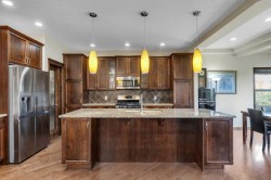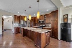 126 Tuscany Summit Heath NW – Where Nature Meets Refined Living. Perched in the heart of one of Calgary’s most sought-after communities, this remarkable home offers more than 3,200 sq. ft. of thoughtfully designed living space, blending comfort and sophistication with the tranquility of nature. Set on a 35’ x 117’ lot, the property backs directly onto a scenic ravine with a pathway and park, providing both privacy and a stunning backdrop year-round. Step inside to a welcoming foyer with a custom built-in closet that opens to a bright front office—perfect for today’s work-from-home lifestyle. The main living area impresses with its warm, traditional gas fireplace and oversized windows that frame serene views of the ravine. The kitchen features rich shaker-style cabinetry, granite countertops, a gas stove, microwave hood fan, and a central island with breakfast bar, making it the heart of the home for both casual meals and lively entertaining. Upstairs, retreat to a spacious primary suite complete with a walk-in closet and a five-piece ensuite showcasing granite counters and a corner soaker tub. Two additional bedrooms, a full bath, a large bonus room (currently used as a bedroom), and a convenient laundry room complete the upper level. The fully finished walkout basement—with 9-foot ceilings—extends the living space and includes a fourth bedroom with laundry, a three-piece bath, second laundry, wet bar, and electric baseboard heating, offering flexibility for guests, extended family, or an independent living setup. Step outside to a large deck with stairs leading to a landscaped backyard that opens directly to the ravine pathway. Built-in speaker system in the main floor, bonus room, ensuite and rear deck. Whether it’s morning walks, evening strolls, or family playtime at the park, this setting truly brings outdoor living to your doorstep. Located in vibrant Tuscany, residents enjoy close proximity to schools, shopping, transit, and major routes including Stoney Trail and Crowchild Trail. This is more than a home—it’s a lifestyle opportunity rarely available.
