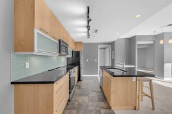 Welcome to UNION SQUARE! This beautifully designed 1 Bed + 1 Bath condo offers a luxurious inner-city lifestyle paired with unbeatable downtown views.Situated on a quiet, tree-lined street, this prime location is just 4 short blocks from the downtown core and steps from some of Calgary’s best restaurants, cafes, and amenities. Enjoy easy access to green spaces, walking paths, and convenient routes in and out of the city.Inside, the unit boasts a bright and airy open-concept layout with 9’ ceilings and floor-to-ceiling windows that fill the space with natural light. The modern kitchen features granite countertops, a tiled backsplash, stainless steel appliances, full-height cabinetry, and a stylish eat-up island with sink—ideal for casual meals and entertaining.The spacious living area opens onto a large covered balcony—perfect for your BBQ or enjoying the downtown skyline.The generously sized primary bedroom features an oversized sliding panel door, with direct access to a 4-piece bathroom and in-suite laundry for added convenience.Enjoy year-round comfort with central air conditioning and the security of heated underground parking. Condo fees include water, sewer, and heat—adding to the ease of ownership.With the Elbow Valley Trail just 3 blocks away and Macleod Trail only 2 blocks out, this location offers both peace and connectivity.Schedule your viewing today!