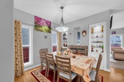 . Beautifully upgraded two-storey front garage home in the heart of Coventry Hills, offering the perfect blend of style, comfort, and practicality. The main floor features 9-foot knockdown ceilings, rich hardwood flooring, and a welcoming entry with a front closet and decorative niche. The open-concept layout flows seamlessly through a bright living area with two large windows, a cozy natural gas fireplace in the dining area with built-in shelving, and a stylish kitchen complete with maple cabinetry, granite countertops, stainless steel appliances including a double-door fridge with water line, a pantry, and a sunny south-facing window. A convenient half-bath and a separate laundry room with upgraded washer and dryer complete the main level. Upstairs, the elegant railing with metal spindles leads to a spacious bonus room with vaulted ceilings, pot lights, and large windows—an ideal space for family relaxation. The primary bedroom offers a generous layout with a walk-in closet and a luxurious ensuite featuring double sinks, a jetted tub, a standing shower, tile flooring, and pot lighting. Two additional bedrooms upstairs are bright and roomy, complemented by a full main bathroom. The finished basement expands the living space with a large recreation area and an extra bedroom—perfect for guests, teens, or a home office. The large south-facing backyard features a maintenance-free deck with glass railing and convenient back-alley access, making it perfect for RV parking without sacrificing yard space. Ideally located within walking distance to several elementary schools, a public middle school, parks, and green spaces—plus just minutes to Notre Dame High School, Vivo Rec Centre, Country Hills Town Centre, and Coventry Hills Centre for all your shopping and dining needs. Enjoy easy access to Stoney Trail, public transportation, and the airport—making this upgraded, move-in-ready home the perfect combination of comfort, convenience, and community living.