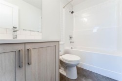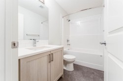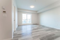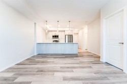 Welcome to this beautifully appointed 2-bedroom, 2-bathroom condo, perfectly located in the vibrant community of Carrington. Designed with a blend of modern style and everyday practicality, this bright, spacious home is ideal for first-time buyers, downsizers, or investors.Step into an open-concept floor plan highlighted by 9-foot ceilings and luxury vinyl plank flooring that flows throughout. Large windows fill the space with natural light, creating a warm and inviting atmosphere perfect for relaxing or hosting friends.The contemporary kitchen stands out with its full-height cabinetry, sleek quartz countertops, stainless steel appliances, and a large island with seating—ideal for casual dining or entertaining. The unit also includes titled underground parking for added convenience.The living area flows effortlessly onto a private balcony, offering a quiet space for your morning coffee or evening downtime. A thoughtful split-bedroom layout provides exceptional privacy—great for roommates, guests, or a dedicated home office.Both bedrooms are generously sized, with the primary suite featuring a walk-through closet and a modern ensuite. A second full bathroom and an oversized laundry/storage room add even more comfort and functionality.Located just steps from beautiful parks, walking paths, and Carrington’s growing mix of shops and amenities, this condo also offers quick access to Stoney Trail and Deerfoot Trail, making travel across Calgary simple and convenient.Stylish, practical, and perfectly situated—this Carrington condo is ready for its next owner. Book your private showing today.