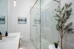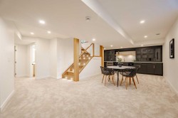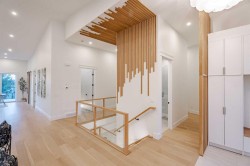 Here it is, a once in a lifetime opportunity to own a ~2,400 sqft bungalow that exemplifies the pinnacle of luxury living—flawlessly designed and masterfully built. Located in coveted St. Andrews Height situated on a large lot with stunning views of downtown Calgary, this home defines luxury while encapsulating timeless elegance, making it an absolute masterpiece. The luxurious presence of this home is instantly exemplified by the stunning curb appeal, with a truly unique modern farmhouse look, featuring stone and wood accents, all highlighted by an exposed concrete pathway leading to your grand entryway. Upon entering, your eyes are drawn to the jaw dropping 12-feet ceilings on the main level, featuring a grand 16-foot vault. The large living area is complete with an elegant venetian plastered gas fireplace and a large window showcasing your stunning downtown views! The main level of this grand residence is filled with natural light with no outdoor noise, thanks to the TRIPLE PANE ‘Tilt and Turn’ European windows. The designer kitchen encapsulates this house as an entertainer's dream with its stunning cabinetry featuring REAL oak cabinets, glass cabinetry, 14-foot island, and stunning paneled JennAir appliance package, perfect for any chef! Next to the kitchen you have a large dining area that features a stunning European style patio slider that provides an abundance of light and leads directly to the deck and rooftop patio, encouraging a seamless indoor/outdoor lifestyle. Stepping back inside, you have a large mudroom and a dedicated pantry room ensuring no shortage of storage. The main floor continues to wow with a central staircase, featuring a glass railing and custom oak paneling acting as the true centerpiece of this home. This level also features a dedicated laundry room and a stunning 3-piece common bathroom with a custom shower. Down the hall you are welcomed to one of TWO primary bedrooms. The first primary bedroom features a large closet and a 3-piece bathroom with a custom-built shower and heated flooring. Moving to the second primary bedroom the wow factor continues with a custom walk-in closet, a stunning 5-piece bathroom, with dual vanities, a free-standing tub, heated flooring, a large custom shower, and a stunning chandelier over the tub. This room also includes a lookout patio – perfect for that morning coffee! The main level is complete with a third bedroom, making this home perfect for families of all sizes. Like the main floor, the basement of this home is an entertainer's dream! Starting with the open Rec Room featuring a large entertainment unit and a large wet bar. The lower level is complete with 2 additional bedrooms and a 4-piece bathroom. The fully finished triple car garage features a roof top patio, transforming the backyard into an oasis, perfect for hosting. This home had no item overlooked and comes with new home warranty to put your mind at ease. Luxury, Functionality, Location and Unbeatable Value!