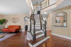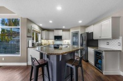 Stop settling for less. This stunningly updated 2,420 sq ft Jayman home in Cranston is turn-key luxury built for a large family. The property features an exceptional layout with six total bedrooms (four up, two down) plus a dedicated basement office/den, ensuring maximum space and functionality.Inside, the home delivers total indulgence. The refreshed kitchen with granite counters and all new appliances opens seamlessly to the relaxing family room and a bright dining nook that is encased in windows. You benefit from air-conditioning, a heated garage, and designer Hunter Douglas blinds throughout, all supported by updated high-efficiency mechanicals for superior comfort. The luxurious primary suite boasts a spa-inspired ensuite with a multi-nozzle rain shower. Entertainment is ready to go in the fully finished basement's large rec room, which features a functional wet bar and wine fridge.Outside, forget the weekend work. Your private backyard area is a zero-maintenance paradise thanks to the artificial turf, coupled with a pergola-covered deck and garden areas perfect for summer living. Gemstone lights give the property a fairy-tale feeling during longer and colder evenings. Located mere minutes from the Cranston Rec Centre, schools, and Fish Creek Park, the home also provides easy access to Deerfoot and Stoney Trail. This spectacular, fully upgraded home is ready for immediate move-in. Don't miss this opportunity - Call today
