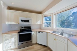 Welcome to your new home in the heart of NW Calgary! 3 storey townhome centrally located close to 14ST/ or Deerfoot Tr with fast access to DT vs Airport, offers 3-bedrooms, 2.5-bathrooms and a single garage! Combines of modern comfort and stylish living, this home features a bright & spacious living room with bay window, a formal dining room adjacent between living space and the kitchen, all updated with brand new LVP flooring throughout. 3 large windows and a patio door in the South facing kitchen and dinning nook, flooded with plenty of sunlight most of the day, it’s perfect for both everyday meals and entertaining. There is a gas fireplace that adds warmth and charm to the chilly winter as an added bonus. 2nd floor features a large primary bedroom, which easily accommodating a king-size bed. It includes a luxurious 3-piece ensuite, and a WIC for all your storage needs. Two additional well-appointed bedrooms and a modern 4-piece bathroom complete this level, offering flexibility for family, guests, or a home office. Convenience is key with laundry located in entry level, and the basement provides additional storage space for whole family needs. Secured parking in the attached garage with full length parking pad. House is just being professionally cleaned in move-in condition! Come see it and make it your home today!