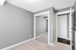 Check out this amazing two-bedroom, two-bathroom condo located on the ground floor. The unit is spacious, with an open-concept design. The kitchen has sleek black granite countertops, stainless steel appliances, and a large central island that is perfect for both cooking and entertaining. The large open living space has warm cork flooring that leads you to a patio with beautiful landscaping and a gas BBQ hook up. The massive primary bedroom has his and her closets and a four-piece bathroom. The second bedroom is a good size and close to the main bathroom. Every room is wired with fiber internet for shaw or telus. This unit also has a titled above-ground parking stall that is super convenient. Located across from the complex are Catholic and Public schools. There are also shops, bus stops, and playgrounds within walking distance. Come and view this amazing home in the beautiful community of Skyview Ranch.