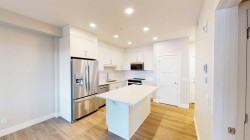 Experience upscale living at 85th & Park — a rare opportunity to own a sophisticated, air-conditioned condo in the heart of Springbank Hill, one of Calgary’s most prestigious and amenity-rich communities. Perfectly positioned next to a protected environmental ravine, this residence offers the serenity of nature alongside modern urban convenience. This beautifully crafted 2-bedroom unit blends contemporary elegance with smart functionality. Inside, you're greeted by a bright and open-concept living space featuring wide-plank luxury vinyl flooring, designer tilework, and premium finishes throughout. The stylish kitchen showcases quartz countertops, full-height cabinetry, a central eating bar, and a suite of sleek stainless steel appliances — ideal for both casual meals and hosting dinner with friends. The spacious living area seamlessly connects to a private, oversized patio, offering the perfect spot for morning coffee or unwinding after work. Whether you're admiring the mountain, prairie, or community views, this outdoor extension of your home invites peaceful moments and fresh air year-round. The bright and generously sized primary bedroom features large windows and a well-appointed closet, while the versatile second room can easily function as a bedroom, home office, or cozy retreat — adapting effortlessly to your lifestyle. Additional highlights include in-suite laundry, air conditioning, and the comfort of titled, heated underground parking. Crafted by one of Alberta’s most reputable low-rise multifamily builders, 85th & Park is a showcase of quality construction, thoughtful design, and elevated living. Just a 5-minute stroll to Aspen Landing, one block from the Aspen Springs Shopping District, and a quick 10-minute commute to downtown, this location puts you close to top schools, transit (including the 69th Street C-Train Station), dining, boutique shopping, and endless pathways woven through the ravine — not to mention fast access to weekend getaways in the Rockies. Whether you're a first-time buyer, savvy investor, or professional seeking convenience without compromise, this home delivers exceptional value in a location that truly has it all. Don't miss your chance to live in one of Calgary’s most sought-after addresses — book your private showing today.