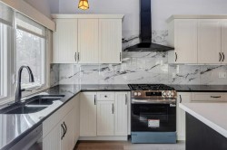 Featuring a recent renovation with a brand-new kitchen, bathrooms, flooring, paint, and more, plus numerous other updates over the years including windows, roof shingles, and exterior Hardie Board siding, this turn-key home is truly move-in ready! The brand-new luxury vinyl plank flooring and beautiful cedar tongue-and-groove ceilings with exposed beams extend through much of the main level, adding warmth, texture, and character throughout. The brand-new kitchen boasts gleaming white cabinetry, stone countertops, a convenient island, and new stainless-steel appliances, including a gas range for the chef in your family. The adjoining family room features a cozy wood-burning fireplace and sliding doors to a covered deck, the perfect place to relax and enjoy the outdoors. A large living room with an adjoining formal dining area provides ideal space for both everyday living and special occasions. All three bedrooms are generously-sized. The primary suite includes a brand-new full ensuite bathroom, and the main 4-piece bath has also been fully renovated. Don’t forget the convenient upper-level laundry with brand-new machines! The lower level offers a legal suite (City of Calgary suite registry #20861) with direct outdoor access. Beautifully updated, it features a brand-new separate furnace and hot water tank, two spacious bedrooms with egress windows, two full bathrooms, a cedar sauna, laundry, and a full kitchen—perfect as a revenue-generating rental or Airbnb, or simply as additional living space for your family. You’ll appreciate the heated double garage this winter, and the convenient location provides easy access to excellent amenities including multiple schools, parks, playgrounds, shopping, transit, Stoney Trail, and the Glenmore Reservoir with its beautiful walking paths and recreation facilities. Call your favorite Realtor to schedule your showing today!