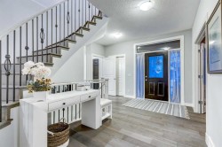 31 Tusslewood View NW epitomizes luxury living, offering over 3,000 sq. ft. of beautifully curated space designed for comfort, elegance, and breathtaking natural surroundings. The main floor with rich hardwood flooring sets an upscale tone, leading you into the gourmet kitchen featuring stainless steel appliances, a gas cooktop, an oversized walk-through pantry, and an impressive island ideal for both everyday living and elevated entertaining. The kitchen flows seamlessly into the sophisticated living room, highlighted by a striking dual-sided fireplace that also enhances the ambiance of the elegant main-floor office. Outside, the professionally landscaped west-facing yard offers a private oasis with a 40 foot stream, waterfall and two tiered pond that backs directly onto a park, with mountain views that elevate every moment spent outdoors. Upstairs, discover four expansive bedrooms, thoughtfully designed to provide comfort and privacy. Two secondary bedrooms share a stylish Jack-and-Jill bathroom, another enjoys its own private 4-piece ensuite, while the opulent primary retreat features dual closets, a spa-inspired 5-piece ensuite with steam shower, and a private balcony—perfect for savouring sunrise coffee against the majestic mountain backdrop.The fully finished walkout basement extends the home’s refined living experience with a spacious family room, a dedicated recreation area, a well-appointed 5th bedroom, and a pristine 4-piece bathroom—perfect for guests or extended family. Situated on an impressive corner lot, this home is further enhanced with gemstone lighting, air conditioning, and a spacious triple-car garage, offering both luxury and practicality. Residents also enjoy exclusive access to the Tuscany Club, featuring a splash park, tennis courts, fitness facilities, and year-round events. Surrounded by parks, playgrounds, scenic trails, and panoramic views of forests, hills, and valleys, this exceptional property blends elegance, comfort, and an unparalleled lifestyle in one of Northwest Calgary’s most desirable communities.