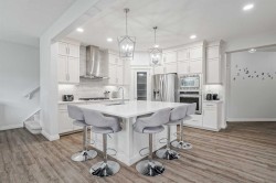 OPEN HOUSE SUN DEC 14TH FROM 1-3! Lakeside Luxury Meets Modern Family Living in Mahogany! Welcome to a home that blends sophisticated style with the ultimate family lifestyle. This stunning, Morrison-built corner-lot home in the prestigious Mahogany community offers an exceptional living experience, just steps from private lake access and exclusive community amenities. A Modern & Inviting Interior-Step inside to a bright and spacious main floor designed for both daily life and grand entertaining. Light laminate flooring flows throughout, leading you to the heart of the home: a chef's kitchen. It features an expansive island, granite countertops, and sleek white cabinetry complemented by top-of-the-line stainless steel appliances. Adjacent to the kitchen, a formal dining area is ready for intimate dinners, while the cozy living room offers a perfect gathering space with its striking stone-surround fireplace. A Private Family Sanctuary-The upper level is a peaceful retreat for the entire family. It hosts four generously sized bedrooms, including a lavish primary suite complete with a luxurious ensuite and a large walk-in closet. A versatile bonus room provides a perfect space for a media room, play area, or quiet study. For ultimate convenience, the upstairs laundry room is fully equipped with a sink and ample cabinet storage. Ultimate Versatility & Comfort-This home is engineered for year-round comfort with central AC, dual furnaces, and triple-pane windows. The fully finished basement, with its 9-foot ceilings and oversized windows, is an impressive, bright space perfect for a variety of uses. A fifth bedroom and a full bathroom make it ideal for guests or a growing family. The thoughtfully designed wet bar with a full-sized refrigerator and dishwasher, plus a dedicated washer/dryer hookup, creates a self-contained living space for multi-generational families. Your Exclusive Outdoor Heaven-Enjoy a tranquil, low-maintenance escape in your private backyard. A large, south-facing maintenance-free deck is the perfect spot for relaxing and entertaining, while the beautifully landscaped yard, filled with mature trees and shrubs, provides a serene backdrop. A special perk of this home is the semi-private lake access through a residents-only gate, leading to a shared dock just moments from your door. This exceptional home is not just a place to live—it's a lifestyle waiting to be discovered. Don't miss the chance to experience the beauty and elegance of this Mahogany Estates. The location is prime in so many ways, close to shopping, restaurants, Stoney Tr, South Health Campus and the YMCA!