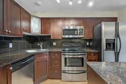 Tucked away in the heart of Sunnyside and backing directly onto tranquil Crescent Park, this bright, move-in-ready one-bedroom condo delivers the perfect blend of urban convenience and peaceful green space. The entire building was comprehensively upgraded in 2007 with all-new windows, roof, electrical, plumbing, and flooring throughout — truly turn-key ownership with no surprises. Step inside to beautiful, well-maintained laminate flooring that runs seamlessly through the open-concept layout, enhanced by contemporary recessed lighting. The sleek kitchen boasts rich espresso cabinetry, expansive granite counters, stainless-steel appliances, built-in microwave hood fan, and a dedicated pantry for extra storage. The spacious living and dining area is bathed in natural light from oversized floor-to-ceiling windows. Slide open the door to your private east-facing balcony — the ideal spot to greet the day with stunning sunrises and your morning coffee. Thanks to the eastern exposure, the unit enjoys refreshing morning sun while staying comfortably cooler through Calgary’s hot summer months. The generously sized primary bedroom easily accommodates a king bed, nightstands, dressers, and even a convenient work-from-home nook. A large walk-in closet provides excellent storage, and the spa-inspired four-piece bathroom features a deep soaker tub, granite vanity, and stylish tile finishes. In-suite stacked washer and dryer complete the package. Perfect for first-time buyers, young professionals, or investors, this condo is just minutes from SAIT, the University of Calgary, Foothills Medical Centre, Alberta Children’s Hospital, trendy Kensington, Prince’s Island Park, the river pathways, and downtown. Move-in ready, turn-key properties in this prime Sunnyside pocket rarely last long — book your showing today!