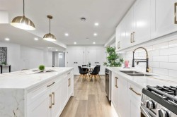 FULLY RENOVATED with all City Permits, Welcome to this stunning Front garage bungalow home that has been beautifully renovated in an oversized lot on a nice quiet street in the desirable community of Willowpark. This stunning bungalow has undergone a top-to-bottom renovation to the highest standards, ensuring that every detail has been carefully crafted to its perfection. You are welcomed by a huge open concept living area with 5 BEDROOM/ 3 Bathroom/2 Kitchens in the house. As you enter the home, you will immediately notice the durable vinyl plank flooring that flows throughout the main living space, creating an inviting and modern ambiance. The open concept living area boosts a spacious living room with large windows that allows natural light to flood in and brighten up the space with a cozy modern fireplace. The kitchen is a chef's dream, complete with stainless steel appliances, and a large quartz countertop with a great size island is perfect for entertaining guests. The main level features a primary bedroom with ensuite and 2 more bedrooms, with a full bathroom conveniently located nearby. The legal basement suite has two more bedrooms, full bathroom, separate laundry and a kitchen with separate entrance, making it an ideal space for guests or Airbnb to generate extra income. Come and experience the beauty of this home for yourself. CLOSE TO TRANSIT, SHOPPING CENTER, PARK and SCHOOLS. Renovation completed within city permit compliance. Book your showing Today!