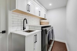 LUXURY RENOVATION | 5 BEDS + 3 BATHS | 4-LEVEL SPLIT | 2,600+ SQ FT OF LIVING SPACE | DOUBLE GARAGE | FACES GREEN SPACEThis completely redesigned and modernized home offers a perfect blend of functionality, style, and luxury in the highly desirable community of Varsity. Ideally located just minutes from the University of Calgary, Market Mall, University District, and the LRT, it provides exceptional convenience for both families and professionals. Rebuilt from the studs up in 2022 the renovation met 2022 building codes with new plumbing, electrical, insulation, heating, and exterior were installed ensuring quality and longevity for years to come.Inside, the main floor showcases an open-concept layout with engineered hardwood throughout and large windows that flood the space with natural light. The contemporary kitchen is a chef’s dream, featuring custom shaker cabinetry, a generous pantry, subway tile backsplash, and a premium stainless steel appliance package that includes a French door refrigerator, gas cooktop, built-in oven and microwave. A spacious quartz-topped island provides extra prep space, breakfast bar seating, and a stylish focal point for gatherings.The inviting living area centers around an elegant inset gas fireplace with a dark tile surround and built-in media unit, creating the perfect place to relax. The adjacent dining area opens through large sliding doors to a large deck and interlocking brick patio—an ideal setting for outdoor dining and entertaining.Upstairs, you’ll find continued hardwood flooring and a stunning primary suite designed for comfort and sophistication. The room features a soft grey accent wall, large window, custom walk-in closet, and a beautiful barn door that leads to the luxurious spa inspired 5-piece ensuite. The ensuite includes a modern double-sink vanity, freestanding soaker tub, and a glass-enclosed shower with. A secondary bedroom overlooks the front yard and green space across the street, while a nearby 4-piece bathroom offers matching quartz counters with a tiled tub & shower combo.The lower level adds even more functional living space with engineered hardwood, three additional bedrooms, a full bathroom, and a stylish mudroom featuring built-in storage and direct backyard access. One level down, a bright and expansive rec room awaits—complete with plush carpeting, a custom media wall, and a wet bar with built-in cabinetry and a beverage fridge perfect for watching the game or movie nights with the family.Outside, the private backyard is fully fenced and opens directly onto Varsity Acres Park—perfect for kids, pets, and outdoor activities. With its prime location, modern updates, and timeless design, this exceptional Varsity home offers the perfect balance of luxury, comfort, and convenience.