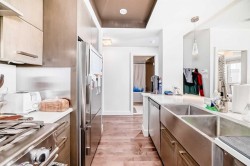 Perfectly situated building provides ease of travel, via C-Train, on foot or by car. Enjoy this stylish home with plenty of light, space and an open concept. Facing the inside courtyard, you are shielded from the noise of Macleod - evenings on your balcony will offer more tranquility than other units. With an inviting feel of both warmth and comfort, you will love coming home to this one bed plus den home and waking up to the sun from south-eastern skies. Stylish cabinets, gas stove and stainless steel appliances, along with the additional, flexible space of the den and in-suite laundry, this home is the perfect oasis after a long day. Steps from shopping, Fish Creek Park, and walking paths, this home is perfect and waiting for you to call it home.